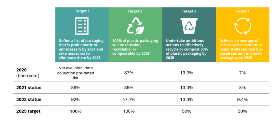 The wave of sustainable packaging commitments set a few years ago will expire in 2025. Many of these are aligned with the Ellen MacArthur Foundation’s (EMF) New Plastics Economy Global Commitment and country-level “pacts.” These programs focus on plastic packaging aims. Now, just a few months away from 2025, how close are companies to meeting these goals?